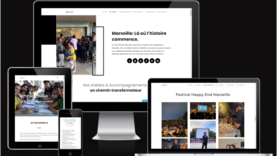 [dipl_content_toggle content_one_title= »Une Vision » content_one_text= »L’objectif principal du projet pour le site Action Bomaye était de créer une plateforme dynamique et engageante qui reflète l’énergie et l’esprit de l’association. Le site devait non seulement informer les visiteurs sur les activités de l’association, mais aussi inspirer et mobiliser une communauté autour de ses actions, notamment dans les domaines de l’urbanisme participatif et de l’organisation d’événements culturels. » content_two_title= »Notre Mission » content_two_text= »Pour atteindre l’objectif de créer une plateforme dynamique et engageante, une approche centrée sur l’utilisateur a été adoptée, avec un design moderne et responsive, facilitant l’accessibilité sur tous les dispositifs. Un système de gestion de contenu a été intégré pour permettre des mises à jour régulières, tandis que les visuels et la typographie ont été soigneusement choisis pour renforcer l’identité visuelle d’Action Bomaye. Le résultat final est un site web attrayant qui reflète parfaitement les valeurs de l’association, captant l’attention des visiteurs et augmentant leur engagement, tout en étendant la visibilité en ligne de l’association et en facilitant la diffusion de ses initiatives. » toggle_alignment= »left » switch_color_off= »#000000″ switch_color_on= »#29d8db » switch_bg_color_off= »#eeeeee » switch_bg_color_on= »#eeeeee » _builder_version= »4.27.0″ _module_preset= »default » content_toogle_header_font= »|600||||||| » content_toogle_header_text_color= »#FFFFFF » content_toogle_header_font_size= »20px » content_toogle_content_one_text_align= »left » content_toogle_content_one_text_color= »#FFFFFF » content_toogle_content_one_line_height= »1.7em » content_toogle_content_two_text_color= »#FFFFFF » content_toogle_content_two_line_height= »1.7em » content_toogle_header_font_size_tablet= » » content_toogle_header_font_size_phone= »20px » content_toogle_header_font_size_last_edited= »on|phone » locked= »off » global_colors_info= »{} »][/dipl_content_toggle]